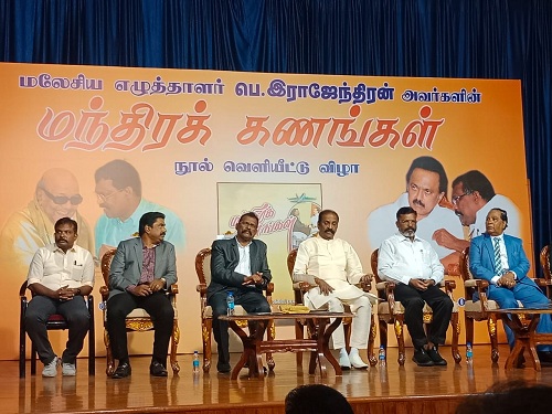 மலேசியா எழுத்தாளர் திரு இ ராஜேந்திரன் அவர்கள் எழுதிய மந்திர கணங்கள் நூல் வெளியீட்டு விழாவில் கவிப்பேரரசு திரு வைரமுத்து அவர்கள் வெளியிட விடுதலை சிறுத்தை கட்சி தலைவர் தொல் திருமாவளவன் எம்பி அவர்கள் பெற்றுக் கொண்டார் இவ்விழாவில் டி வி எம்சேவா பாலம் நிறுவனத் தலைவர் திரு மா இருளப்பன் அவர்கள் திரு எம்வி ராகவன் பி ஆர் ஓ கலந்து கொண்டார்கள்
