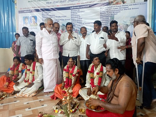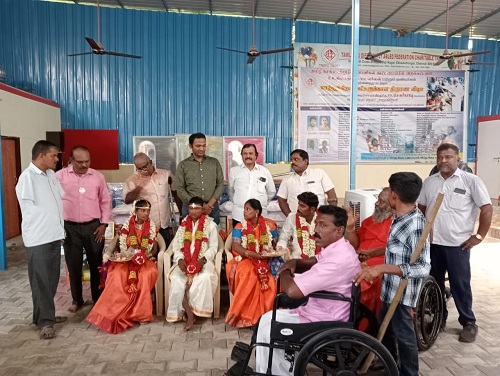 | தமிழ்நாடு மாற்றுத்திறனாளி கூட்டமைப்பின் அறக்கட்டளை சார்பாக இரண்டு ஜோடி மாற்றுத்திறனாளிகள் திருமணம் செய்யப்பட்டது திருமணத்தைகூட்டமைப்பின் தலைவர் திரு சிம்மச்சந்திரன் தலைமையில் இந்து அறநிலையத்துறை அமைச்சர் மாண்புமிகு P K சேகர்பாபு அவர்கள் கலந்து கொண்டு இத்திருமணத்தை நடத்தி வைத்தார் இதில் சிறப்பு அழைப்பாளராக டி வி எம் சேவா பாலம் நிறுவனத் தலைவர் திரு மா இருளப்பன் அவர்கள் கலந்து கொண்டார் மற்றும் நிர்வாகிகள் திரு எஸ் பெஞ்சமின் திரு வீரராகவன் பிஆர்ஓ திரு மருதுபாண்டி கலந்து கொண்டு மணமக்களை வாழ்த்தியது | |