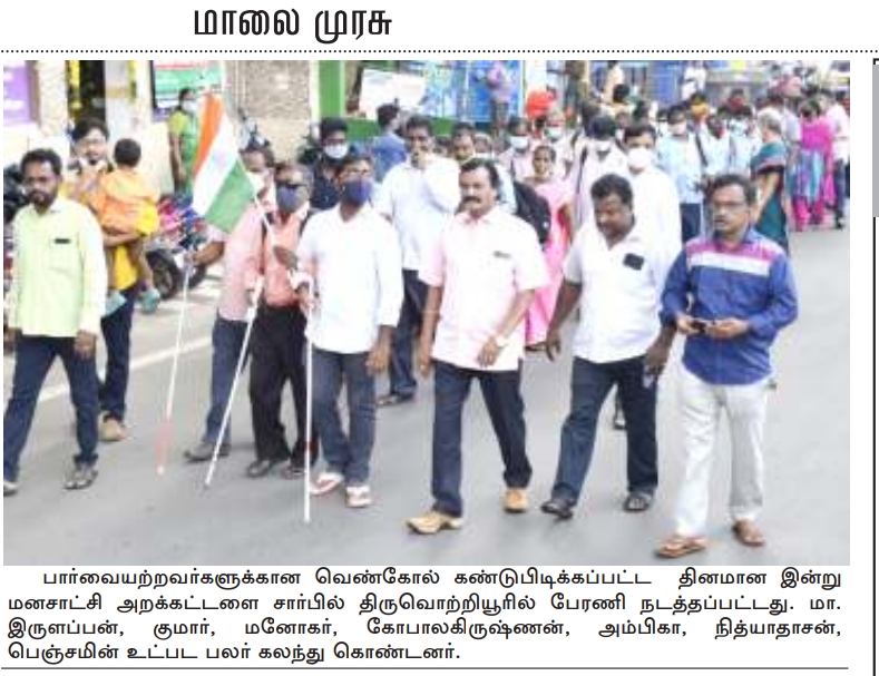 | சின்னத்திரை இயக்குனர் சங்கத்தில் உள்ள உறுப்பினர்களுக்காக #DVMSevaPaalam அமைப்பு சார்பில் நிறுவனர் திரு மா இருளப்பன் அவர்கள் (Zinc, Vitamin A,Vitamin C , Vitamin D) போன்ற சத்து மாத்திரைகள் சுமார் 500 பேருக்கு சின்னத்திரை இயக்குனர் சங்கத்தின் தலைவர் திரு தளபதி , செயலாளர் திரு ரங்கநாதன் , இயக்குனர் திரு பிரபாகரன் , பழம்பெரும் நடிகர் திரு ரஜினிகாந்த் அவர்களின் நண்பர் திரு நட்ராஜ் அவர்கள் மற்றும் நடிகர் திரு வையாபுரி , நடிகை திருமதி மகாலட்சுமி அவர்கள் பெற்று கொண்டனர் உடன் பாலம் அமைப்பு சார்பில் செயலாளர் திரு பென்சமின், திரு ராமலிங்கம் (பொருளாளர்), திரு ராகவன் (PRO) , திரு தியாகராஜன் மற்றும் இளைஞர் அணி தலைவர் திரு இ.மாரிமுத்து (எ) விக்னேஷ், திரு ஜெகதீசன் இருந்தனர்ர்) மற்ற | |